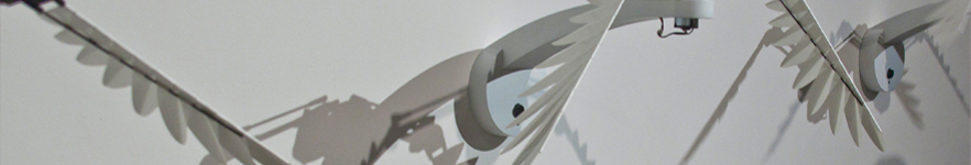 Ryan set out to synthesize his passion for designing mechanisms with his interest in the kinematics of a bird’s wings. The result of which is “resistance.” Crafted from 3D printed, CNC machined and laser-cut parts; it is time-based, interactive, mechatronic sculpture that emulates the articulated flapping of bird’s wings. Several sets of these mechanical birds are mounted to a wall and, through various intensities of flapping, respond to the viewer’s movements within the space. The objects simultaneously invite and intimidate with their graceful, fluid motion contrasted by the direct reactivity of their activation.